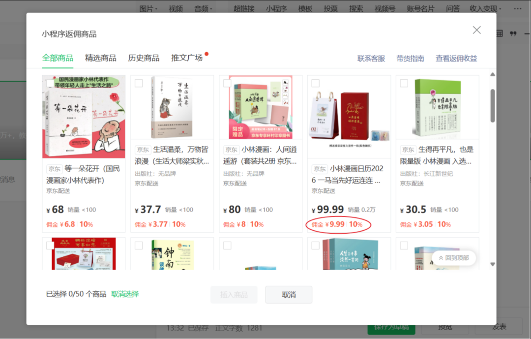 2.文创带货:漫画日历、书籍等周边,单笔佣金超10元